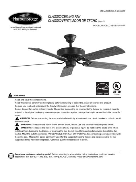 Read Online Harbor Breeze Ceiling Fan Manual Kobo Open Library